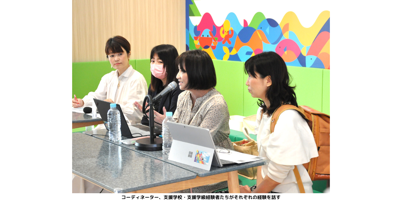 就学前相談会のイベントに登壇したのは、就学支援コーディネーターの鈴木さん、高校2年生支援学校保護者の佐藤さん、 小学6年生支援学級保護者の小林さんの3名。