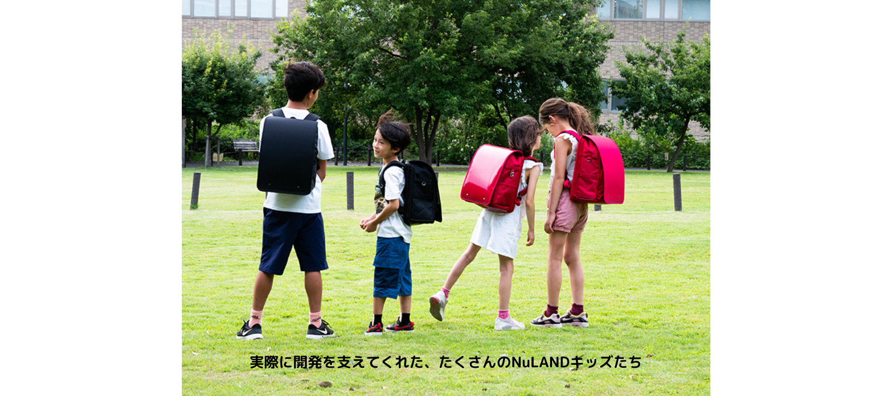 たとえばNuLANDの大きな特徴である「ファスナーでフルオープンになる」という機能。これは、現役小学生の親御さん たちから「(今の形状だと)中がブラックホールすぎる。奥から何が出てくるかわからない(笑)」という経験者ならではのユニークな意見が飛び出したことで誕生しました。